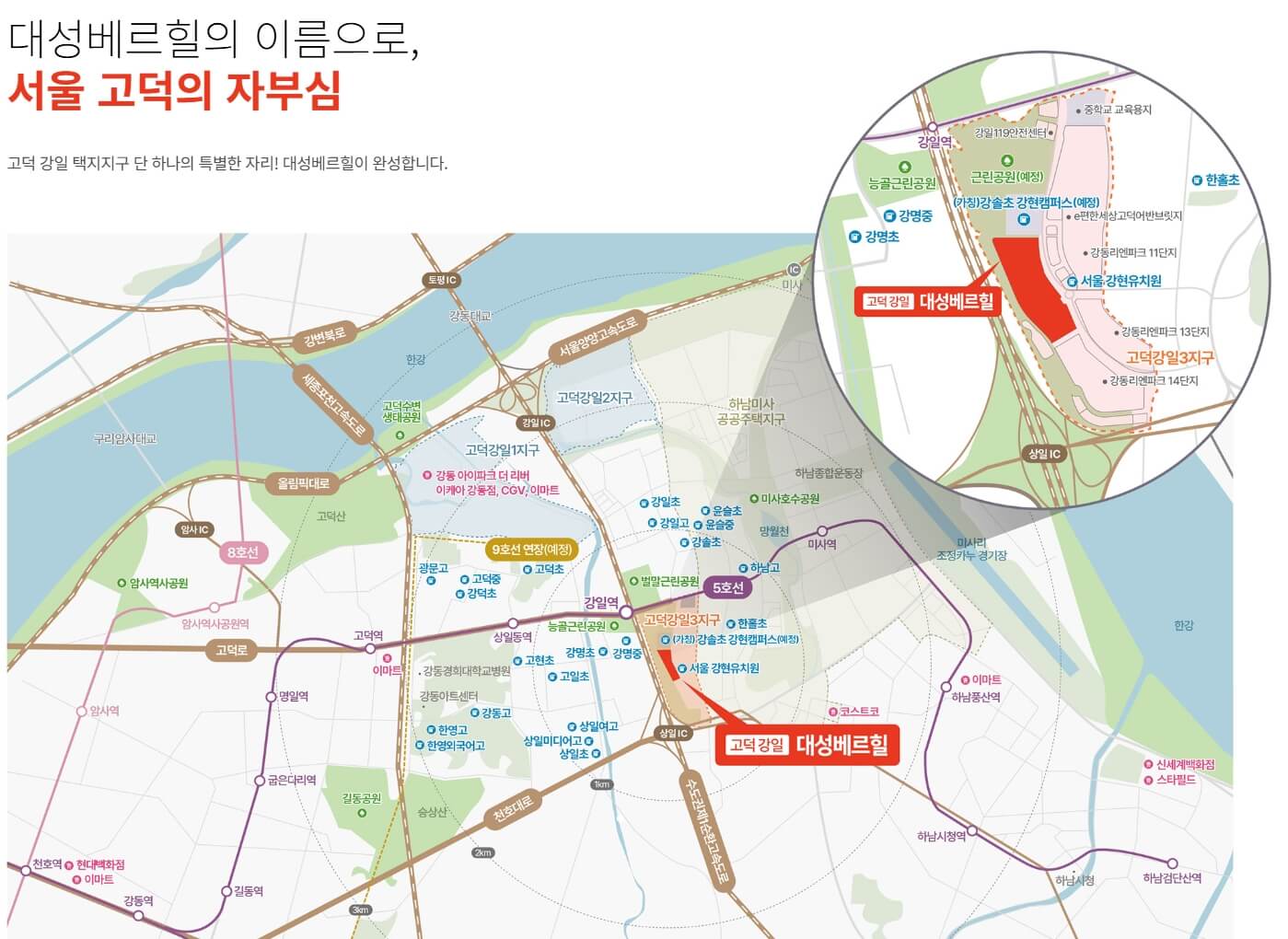 이처럼 ‘고덕강일 대성베르힐’은 주거지로서의 조건을 두루 갖춘 입지로, 실거주와 미래 가치 상승 두 마리 토끼를 노릴 수 있는 단지입니다.