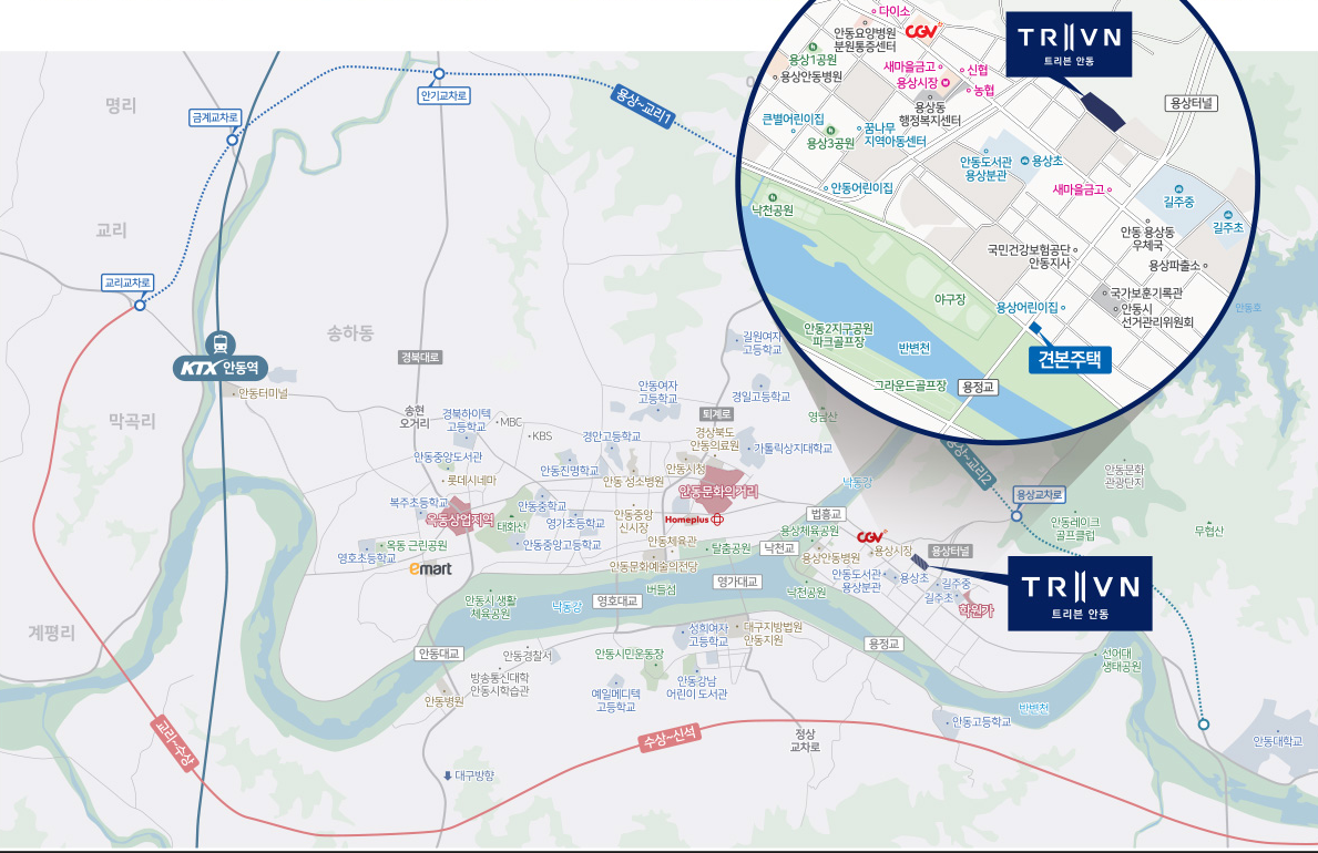 또한 교통 측면에서도 안동IC와의 접근성이 뛰어나 외부 이동이 수월합니다.