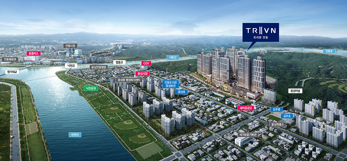 2025년 5월 13일 1순위 청약을 앞둔 ‘트리븐 안동’은 경북 안동시 용상동 산46-1 일대에 조성되는 신규 고급 주거단지로, 대신자산신탁이 시행하고 두산에너빌리티가 시공을 맡은 프로젝트입니다. 지하 4층~지상 19층, 7개동, 총 418가구 규모로 구성되어 안동 지역에서 보기 드문 중대형 고급 아파트로 주목받고 있습니다.