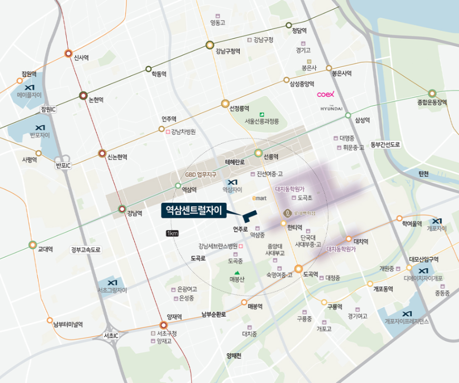 역삼 센트럴자이의 가장 큰 매력은 압도적인 강남 역삼동 입지입니다. 강남의 심장부에서 누릴 수 있는 최상의 교통, 교육, 생활 인프라를 갖추고 있습니다.