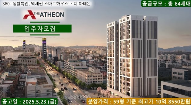 ‘디 아테온’은 소형 평형, 소규모 단지를 선호하는 실수요자 중심의 전략 단지입니다. 분양가가 다소 높다는 점이 부담이 될 수 있지만, 서울 내 희소한 신규 아파트라는 점에서 가치 보존력이 높을 수 있습니다.
