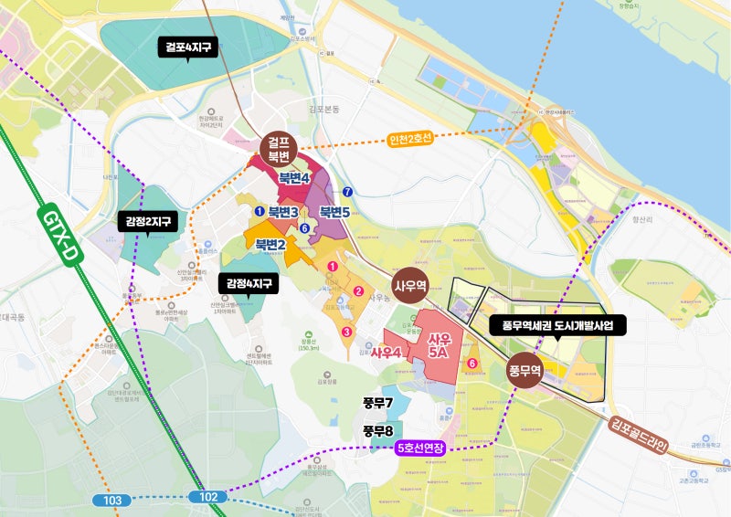 김포 북변2구역은 김포 원도심 재개발 사업의 핵심 구역 중 하나입니다. 기존의 노후 주거지를 대규모 아파트 단지로 탈바꿈시키는 사업으로, 지역 가치 상승 효과가 클 것으로 기대됩니다.