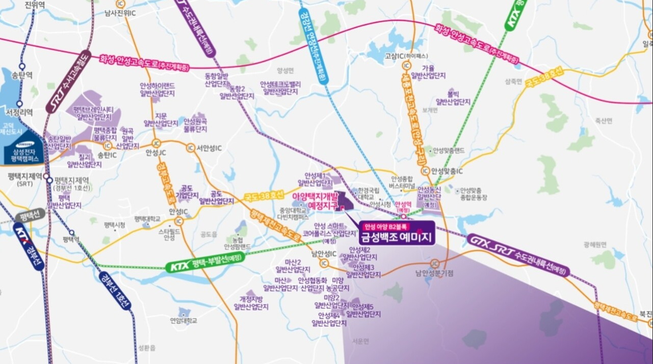 아양택지개발지구는 안성시가 신도시급으로 육성 중인 대표적인 주거지입니다. 주변에는 교육, 교통, 생활 인프라가 단계적으로 확충되고 있으며, 향후 인구 유입에 따른 상권 형성이 기대됩니다. 특히 경부고속도로와 평택~제천고속도로 접근성이 뛰어나 서울과 수도권 남부, 충청권 이동이 편리합니다. 또한 KTX 평택지제역, GTX-C 노선 연장 논의 등 광역 교통망 확충 기대감이 이어지고 있어, 출퇴근 수요와 장기적인 가치 상승 가능성이 높은 지역으로 평가됩니다. 생활 편의성 측면에서도 이미 대형 마트, 의료시설, 학교 등이 가까이 있으며, 택지개발지구 특성상 추가적인 기반시설 확충이 예정되어 있어 거주 만족도가 크게 높아질 전망입니다.