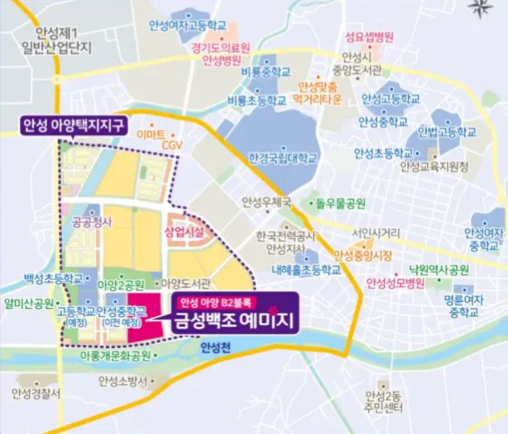 아양택지개발지구의 기반 시설과 생활 편의성을 고려했을 때 안성 아양 금성백조 예미지가 가지는 입지적 장점