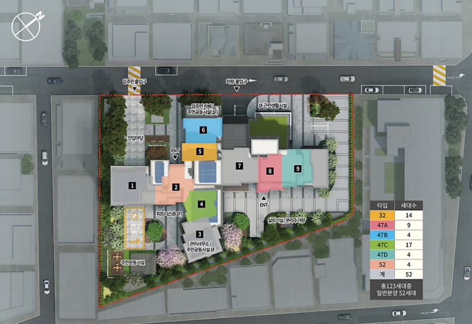 이번 분양은 전용면적 32㎡, 47㎡, 52㎡로 소형 평형 중심의 구성이 특징입니다. 최근 1~2인 가구 증가와 임대 수요 확대에 부합하는 타입으로, 실거주 수요뿐만 아니라 투자 수요도 동시에 겨냥한 것으로 분석됩니다.
