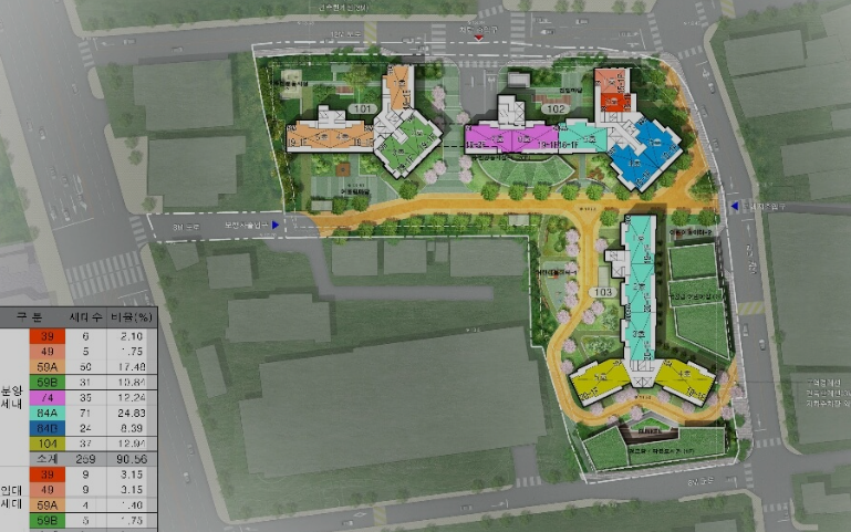 전용 39㎡부터 104㎡까지 다양한 평형 구성과 고급화된 상품성 제공