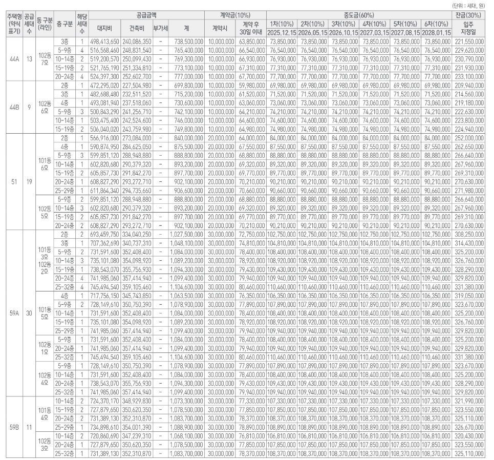 - 중도금: 60% (이자 후불제)
