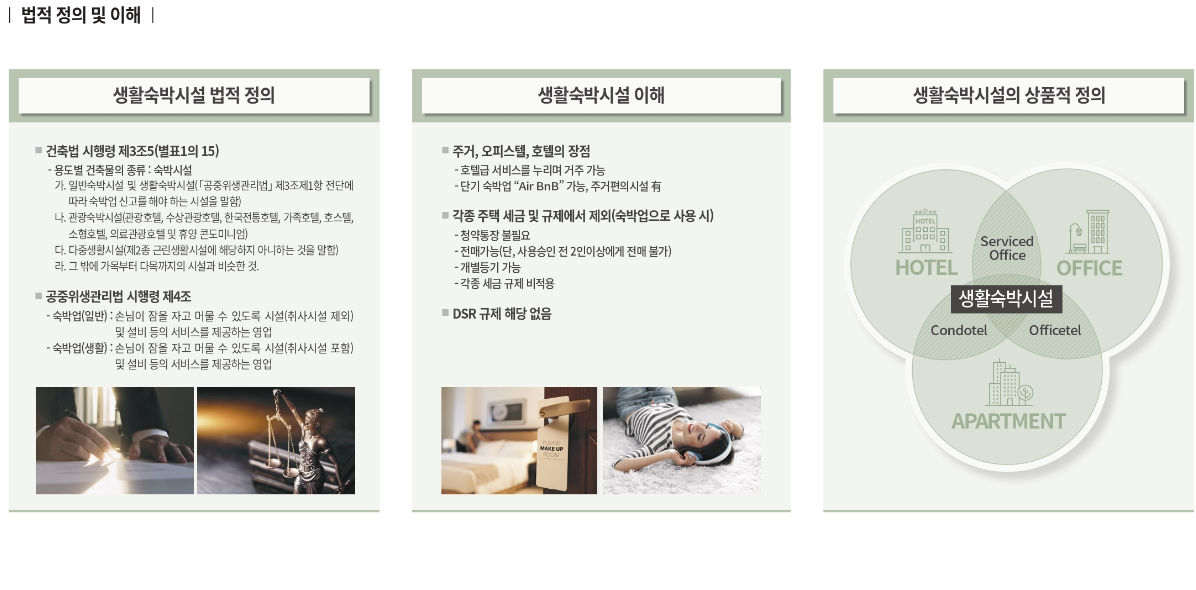 - 거주 불가 규정: 생활숙박시설은 원칙적으로 상시 거주용이 아닌, 숙박시설 용도로만 사용 가능