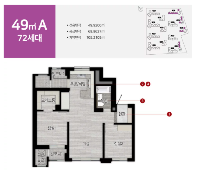 * 49㎡A (2층): 7억 8374만원