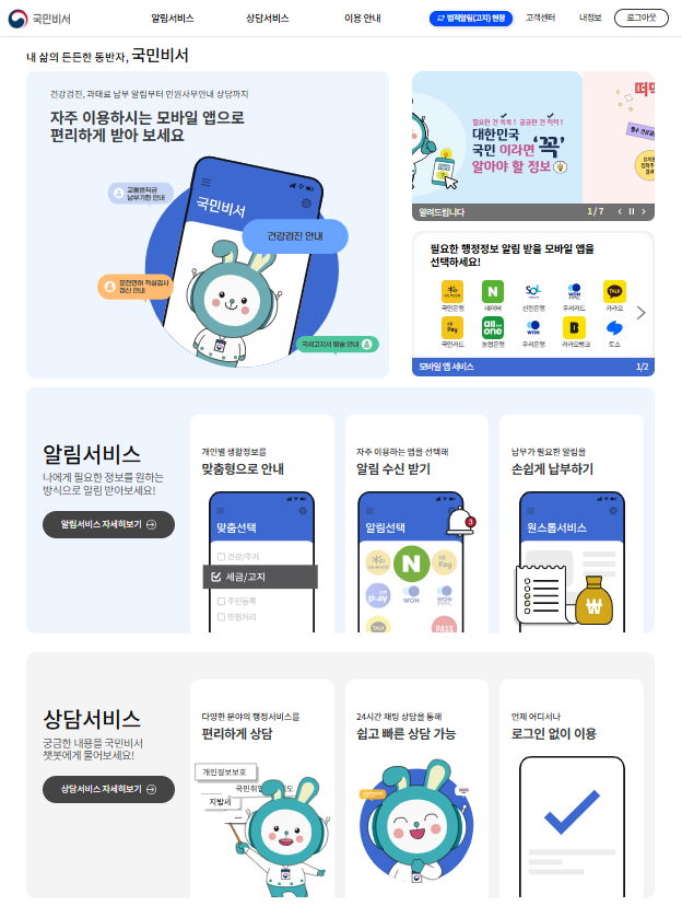 * 국민비서 홈페이지: [https://www.ips.go.kr/pot/forwardMain.do](https://www.ips.go.kr/pot/forwardMain.do)