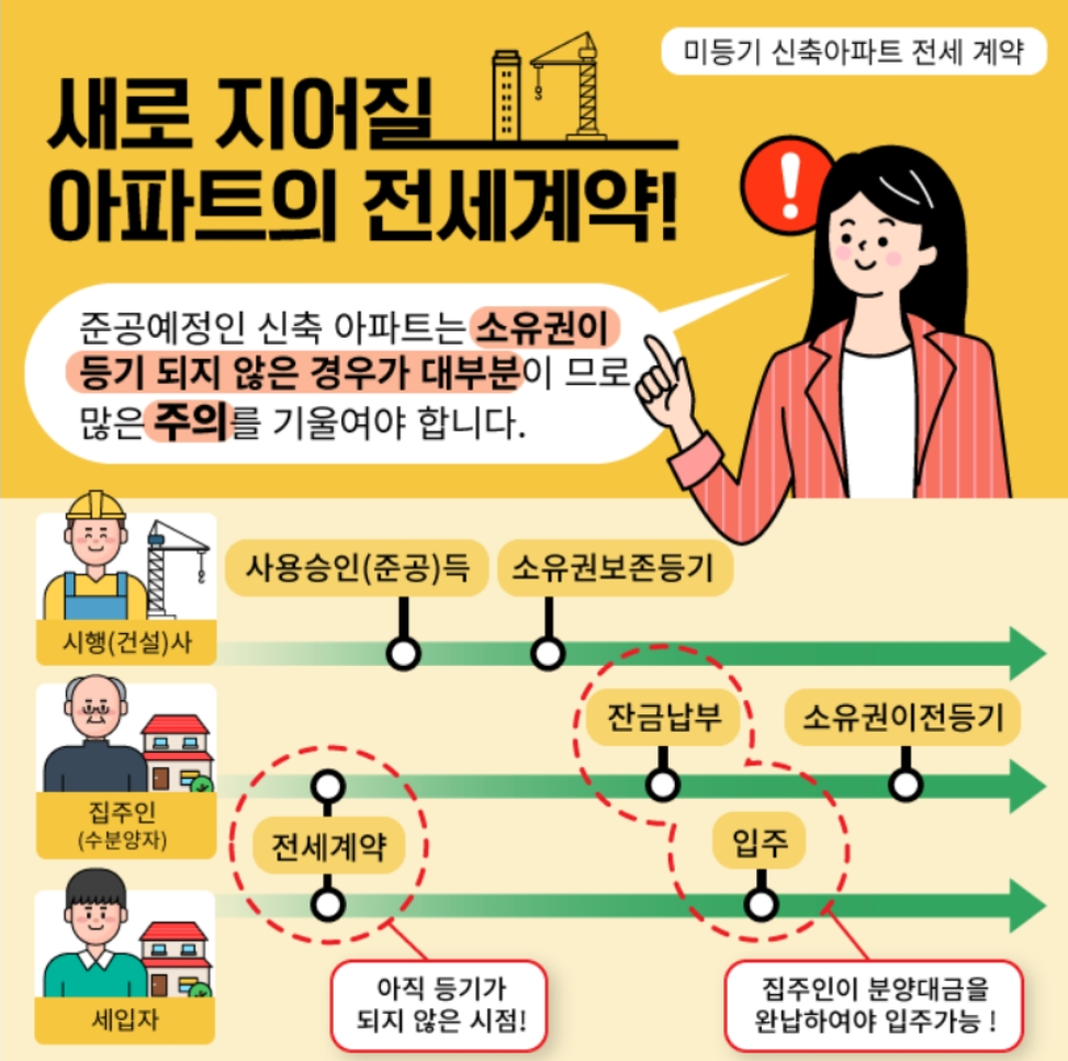 만약 소유권이전 전에 문제가 생기면(예: 시행사나 신탁사에 문제가 발생) 보증금 보호에 공백이 생길 수 있습니다.