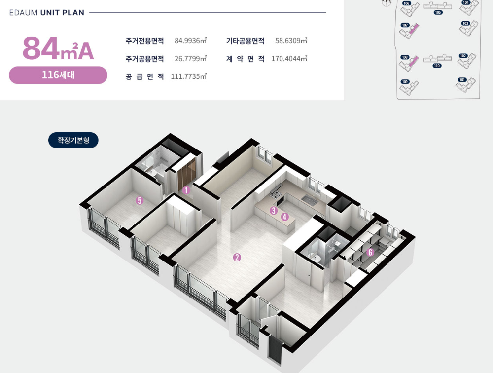 - 전용 84㎡ (공급 34평): 4억2,350만원~4억3,850만원