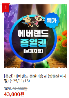 * 할인 정보 확인: 에버랜드 할인 정보를 미리 확인하여 더욱 합리적인 가격으로 방문하세요. 다양한 제휴 할인 및 온라인 예매 할인 등을 활용하면 더욱 저렴하게 즐길 수 있습니다.