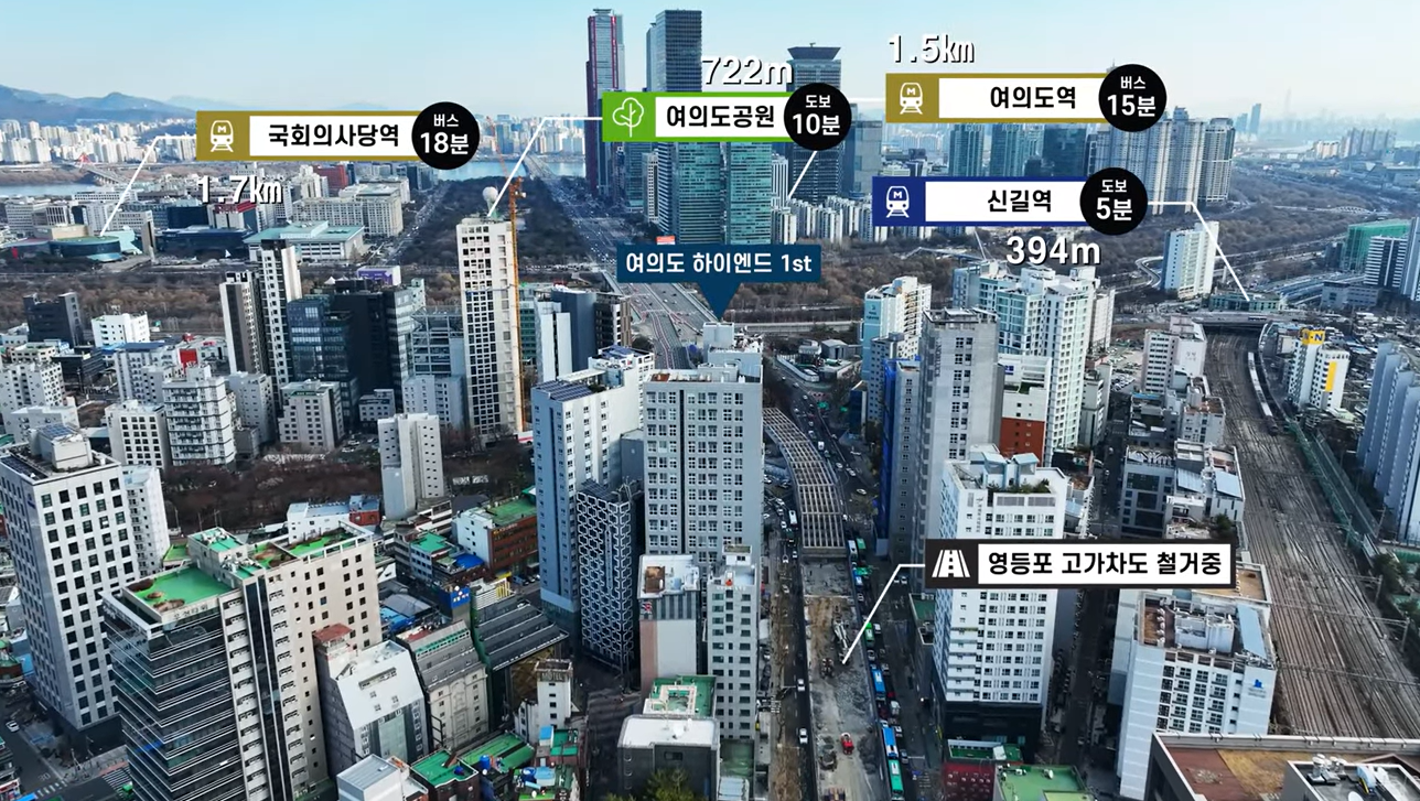 이 단지는 여의도 중심업무지구와의 접근성이 뛰어난 입지에 자리하고 있습니다. 도보권에는 지하철 5호선, 1호선, KTX가 정차하는 영등포역이 있으며, 버스와 도로 교통망도 잘 갖춰져 있어 직장인 수요층을 확보하기에 적합한 지역입니다.