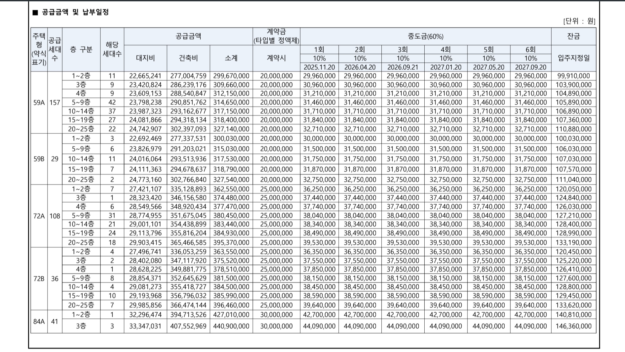 이번 단지의 분양가는 전용 59㎡가 3억 2,754만 원3억 9,537만 원, 전용 84㎡는 4억 6,520만 원으로 책정되었습니다. 평당 분양가는 약 1,310만 원~1,340만 원 수준으로, 수도권 주요 지역과 비교했을 때 상당히 합리적인 가격대라 평가할 수 있습니다.