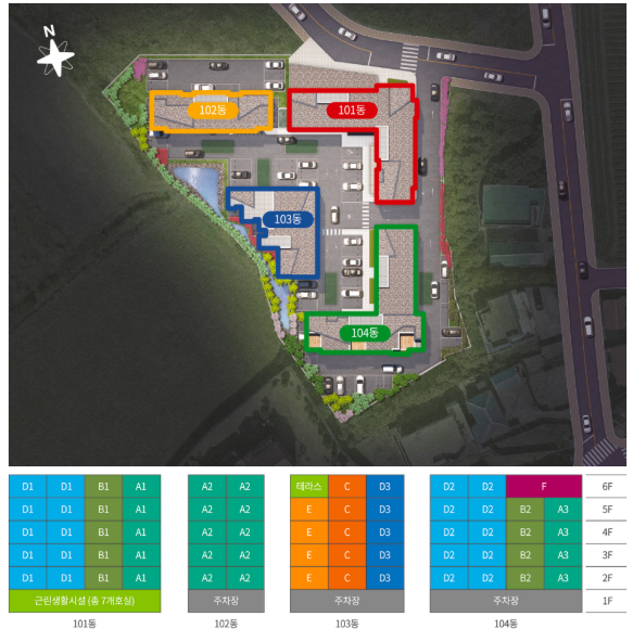 또한 지하 1층부터 지상 6층까지 총 4개 동 규모의 소규모 단지로 조성되며, 전용면적 63~138㎡까지 다양한 평형으로 구성되어 있어 신혼부부부터 세컨드하우스, 은퇴 후 거주지로 고려하는 중장년층까지 다양한 수요를 수용할 수 있습니다.