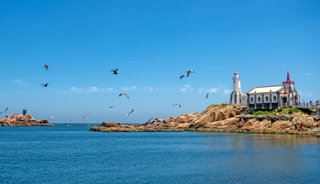 - 드라마 촬영지로 유명한 포토 스팟! 푸른 바다를 배경으로 한 성당 건물이 이국적임.