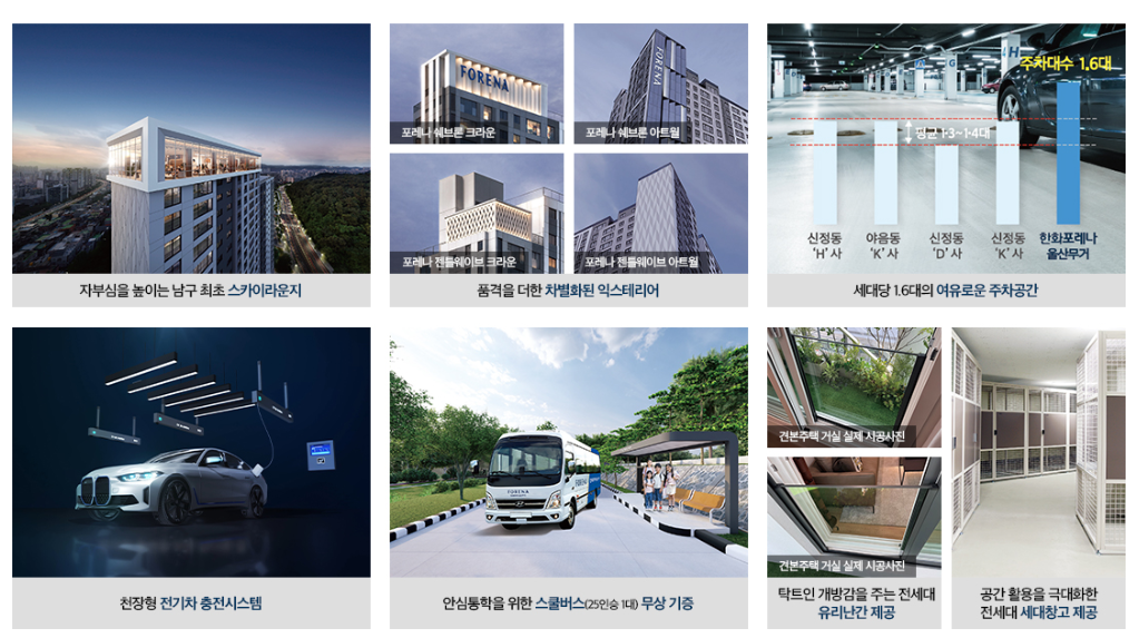 단지는 포레나 브랜드 아파트답게 고급스러운 외관과 커뮤니티 시설을 갖추며, 입주민의 편의와 생활 수준을 한층 끌어올릴 예정입니다. 특히 울산 과학대, 울산대, 상권과 가까운 입지 조건 덕분에 실수요자의 관심이 높습니다.
