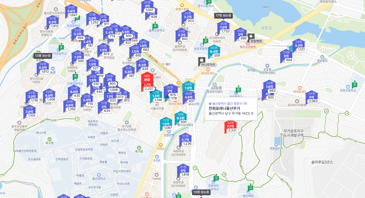 그러나 무거동은 대학, 상업시설, 교통망이 밀집한 생활 중심지이며, 브랜드 대단지 신축 공급이 드문 지역입니다. 따라서 장기적으로는 안정적인 주거 수요를 바탕으로 시세 방어력이 높을 것으로 전망됩니다.