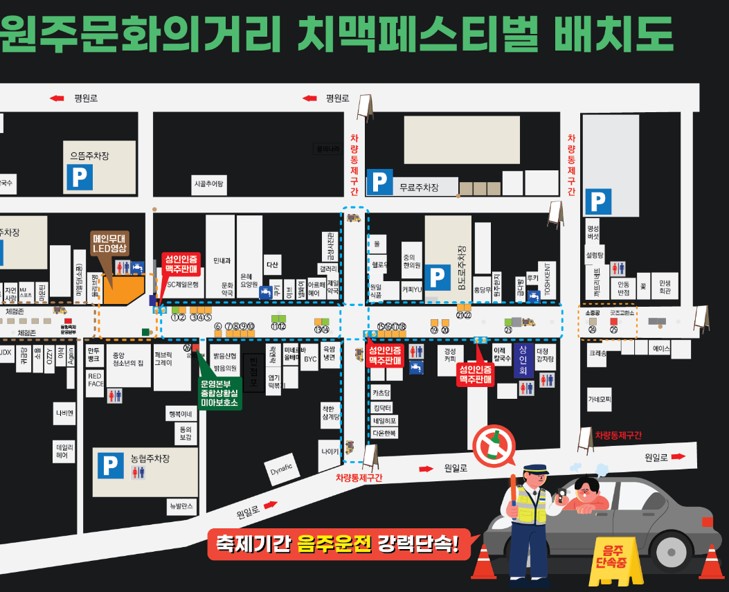 * AK플라자 원주점 주차장: 유료 주차 (축제 기간 동안 특별 할인 적용 가능)